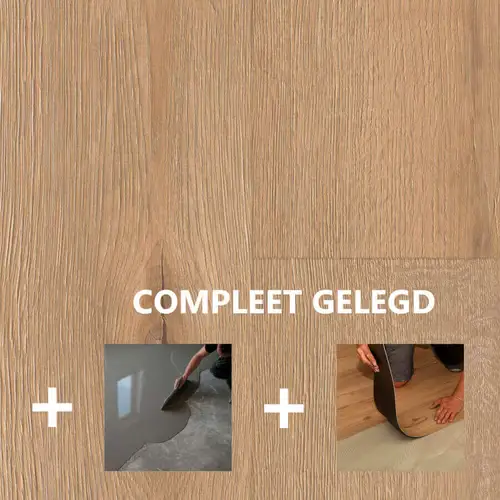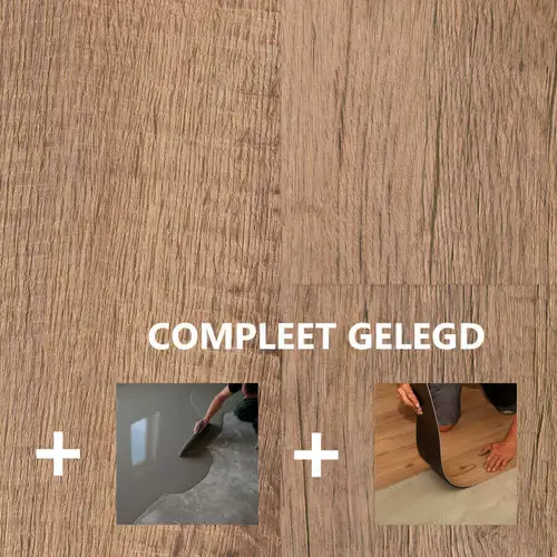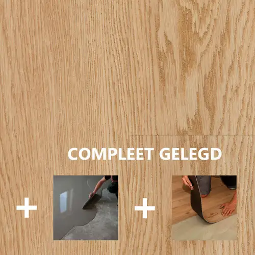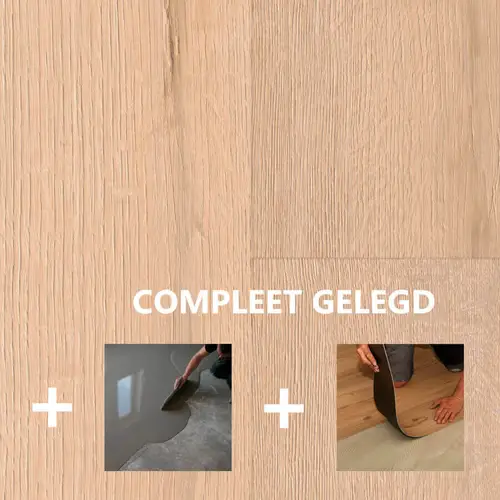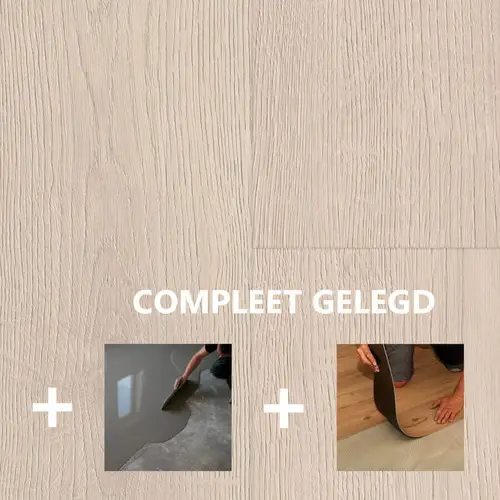Dryback of plakpvc wordt gezien als waardevermeerdering van een koophuis. Egaliseren is bij deze brede pvcvloer een must waarna de vloer verlijmd wordt op de geëgaliseerde ondergrond. Wij raden aan de plakpvcvloer altijd door een vakman te laten plaatsen.