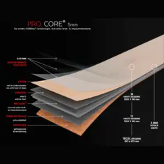 COREtec pvc vloeren zijn, met uitzondering van de COREtec Pro Plus, uit meerdere lagen samengesteld. De kern bestaat uit een WPC tussenbasis waar de klikverbinding in gefreesd is. Onder de kern zit een kurken onderlaag. Op de kern zit de pvc toplaag die is afgewerkt met een sterke slijtlaag. Al deze lagen zorgen voor een zeer stabiele plank die waterbestendig is. Door de kurken onderlaag kun je het COREtec pvc zonder extra ondervloer plaatsen op elke vlakke en stabiele ondergrond, zelfs met vloerverwarming!