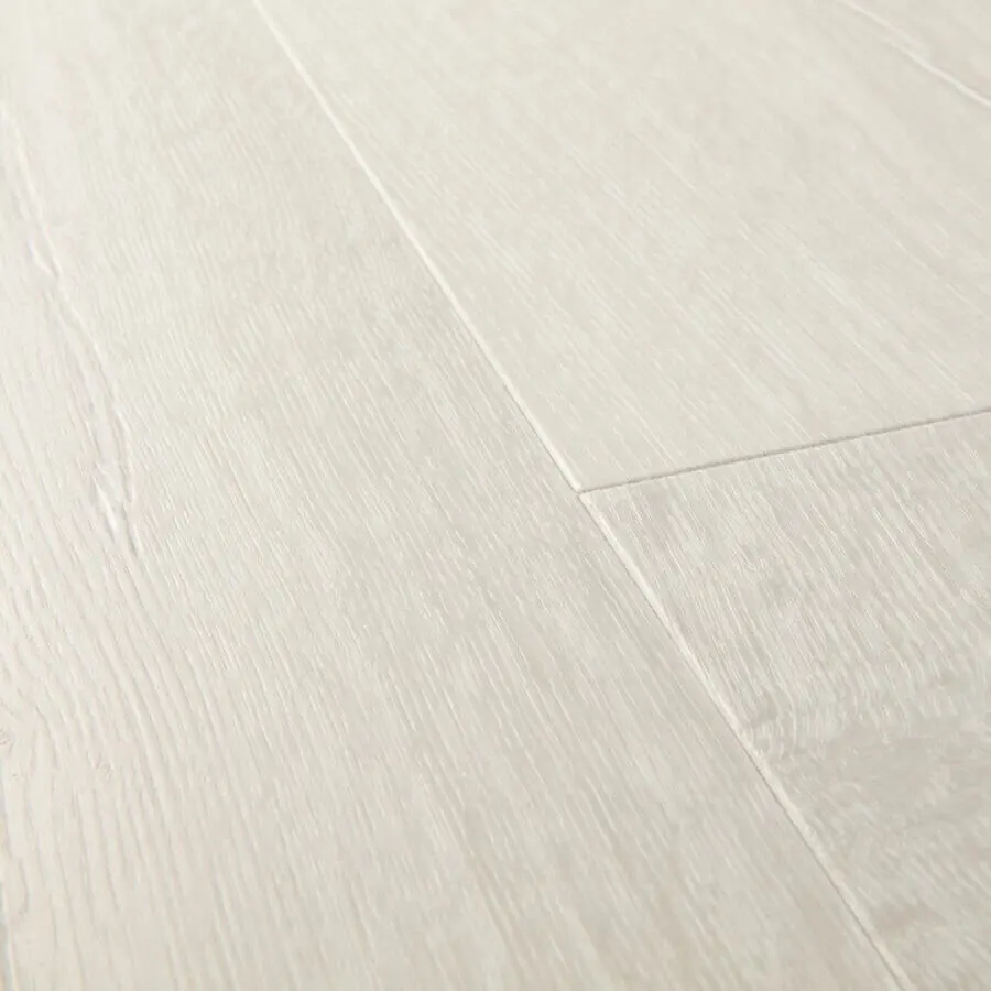 De zeer slijtvaste en waterbestendige laminaatvloer Quickstep Impressive Ultra IMU 3559 Klassieke Patina Eik Licht is het sterkere broertje uit de “gewone” Impressive serie. Zo realistische en tegelijkertijd slijtvast is een laminaatvloer nog nooit geweest. De nerven van het hout zijn bijvoorbeeld niet alleen voor het oog zichtbaar maar zijn ook nog eens voelbaar! De structuur in de toplaag loopt namelijk 100% synchroon met de houttekening, net als bij echt hout. Daarnaast is de toplaag super mat, stroef en zeer slijtvast. De perfecte vloer voor de zwaar belopen ruimtes, zelfs voor winkels, kantoren en hotels!