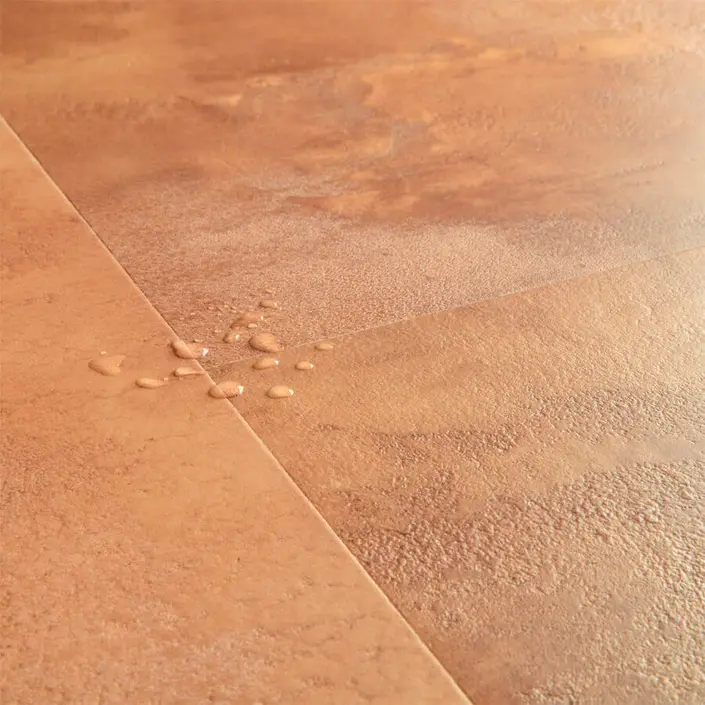 Met de waterbestendige Quickstep Muse MUS 5490 Terracotta tegellaminaatvloer haal je tevens perfectie tot in de badkamer in huis. Je leest het goed, deze prachtige tegelvloer is ook geschikt voor de badkamer! Door de waterafstotende HydroSeal coating krijgt vocht geen kans om via de toplaag of groef in de vloer te trekken. Natuurlijk is dit ook nuttig in de woonkamer of keuken en hoeven ongelukjes nu dus niet meer het einde van de laminaatvloer te betekenen.