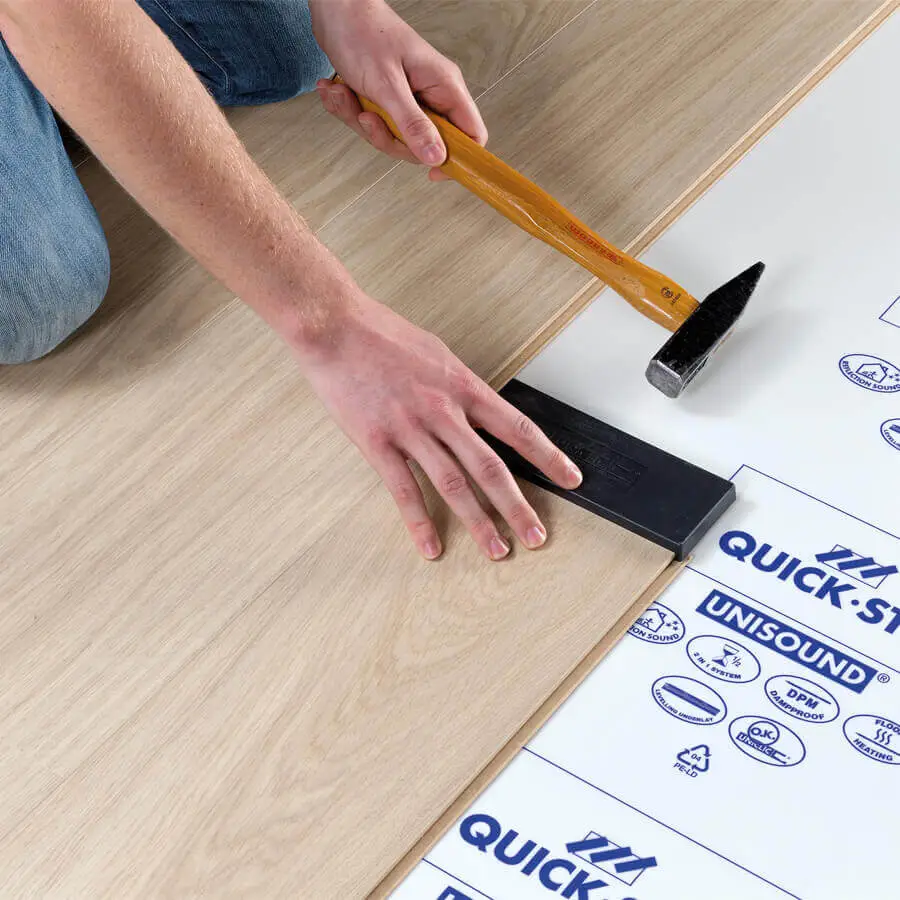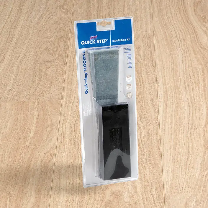 De Quickstep Plaatsingsset is handig te gebruiken bij het (her)plaatsen van je Quickstep laminaatvloer. Een Quickstep Plaatsingsset bevat een slagijzer, een speciaal stootblokje, en 40 afstandspiesjes.