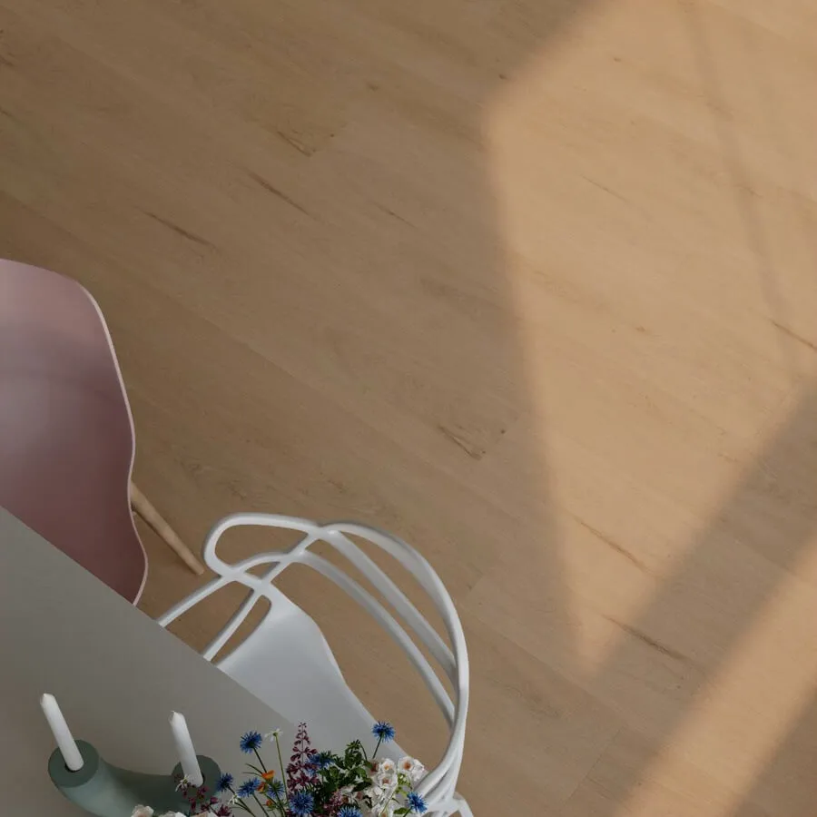 Zo geeft bijvoorbeeld een natuurlijk gekleurde vloer je huis een zachte, tijdloze uitstraling. Denk aan naturel eiken, zandtinten of een warme beige ondertoon. Het effect: meer rust, minder harde contrasten en een interieur dat als één geheel aanvoelt. Vooral in woonkamers en open keukens werkt een natuurlijke kleur als een verbindende factor tussen vloer, meubels, wanden en accessoires.