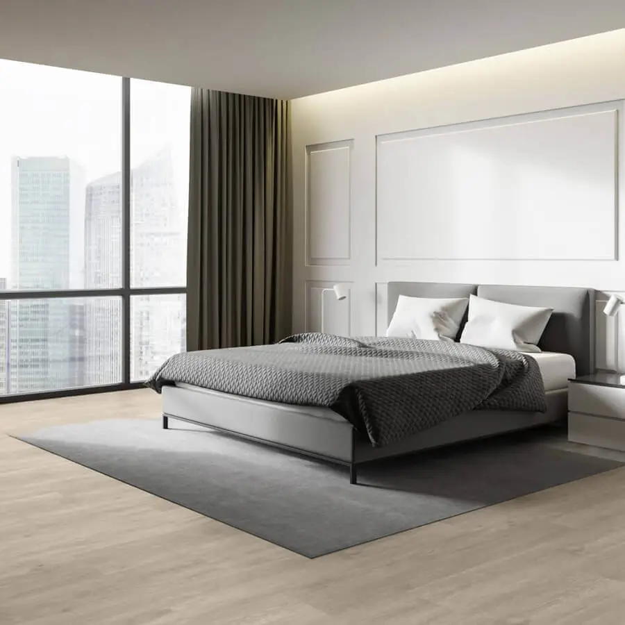 Een lichte vloer zoals deze vloer maakt de ruimtes optisch groter en zorgt voor een tijdloze, heldere uitstraling. Hierdoor is deze kleur uitermate geschikt kleinere ruimtes of ruimtes met weinig lichtinval.