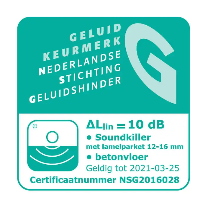 De Soundkiller 10dB ondervloer is een geperste houtvezelplaat voorzien van een VVP-papierlaag. De Soundkiller is, door de 10 dB geluidsreductie, uitermate geschikt voor het leggen van lamelparket in appartementen. De Soundkiller egaliseert oneffenheden tot 3 milimeter, is warmte- en koude-isolerend en heeft een akoustisch en mechanisch geluiddempend effect. De Soundkiller 10dB behoeft nog een extra vochtscherm ivm de garantievoorwaarden.
