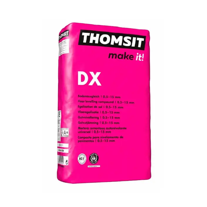 Zeer emissiearm, kunststofgemodificeerd, cementgebonden vloeregaliseermiddel voor het maken van ondergronden die conform de normen zijn en kunnen worden belegd met vloerbedekking en parket. THOMSIT DX is een kwaliteitsegaliseermiddel voor woning- en utiliteitsbouw en kan worden gebruikt op een geschikte ondergrond: