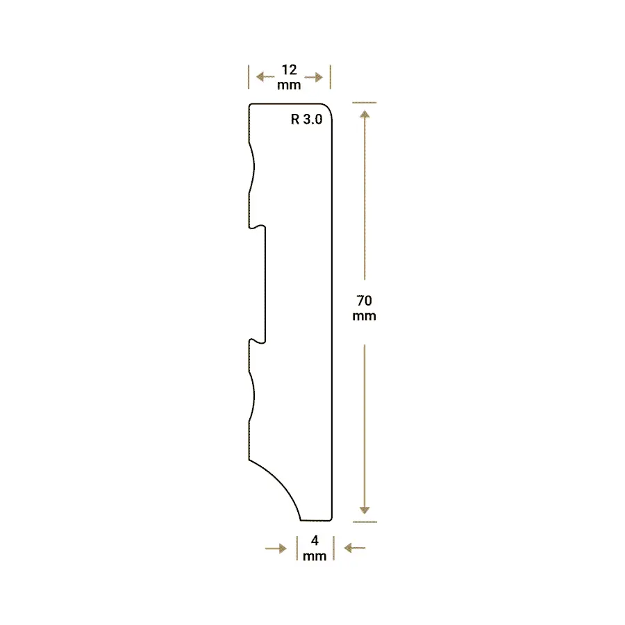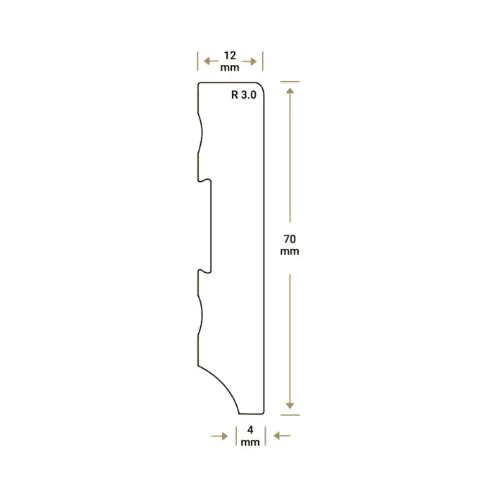 • Omschrijving Watervaste Kunststof Plint Recht 70x12 mm
