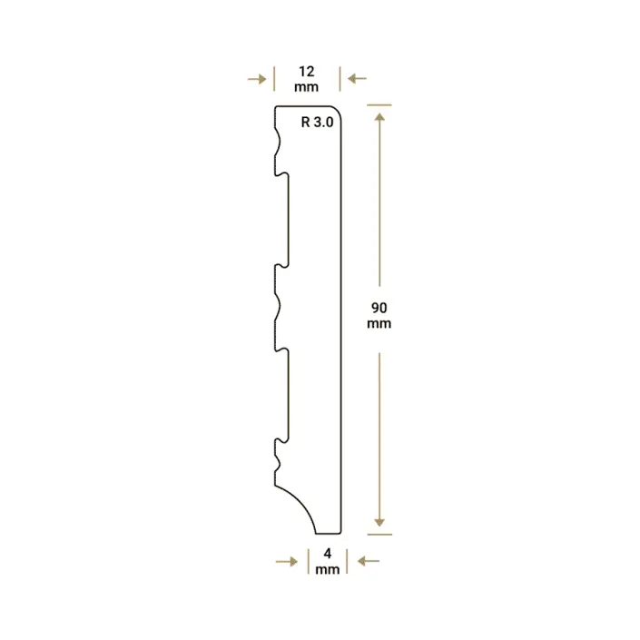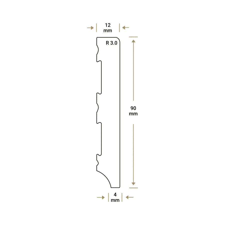 • Omschrijving Watervaste Kunststof Plint Recht 90x12 mm